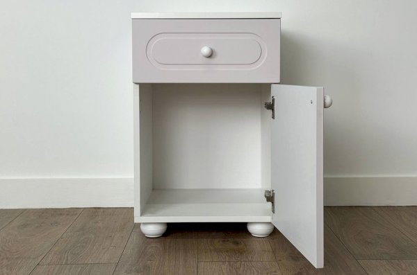 Милана Тумба (с ящиком) — универсальный модуль для детской комнаты, который может использоваться как прикроватная тумба или как компактный комод. Практичное сочетание ящика и закрытого отделения позволяет удобно хранить как мелкие, так и более объёмные вещи.