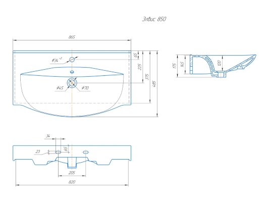 850 - (ШхГхВ), в см: 86,5х48,5х12